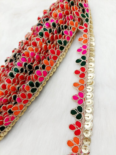 This listing is for a lovely Red Embroidery Polyester Lace Trim.