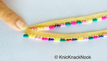 This listing is for a lovely Multicoloured Pearl Beads With Beige Weave Fringe Trim.