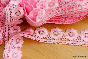 This listing is for a lovely Pink White Embroidered Flower Lace Trim.