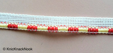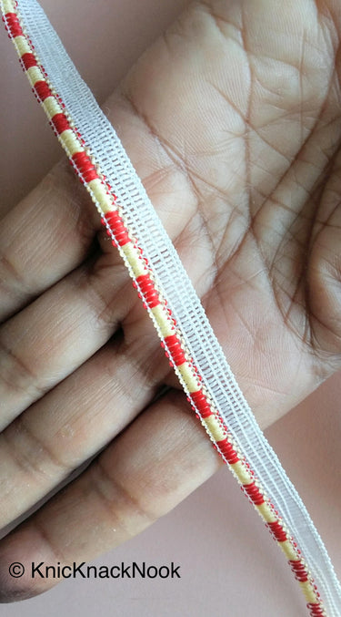 This listing is for a lovely Off White, Yellow And Red Trim, One Yard Lace.