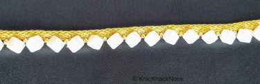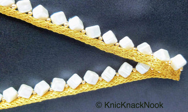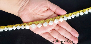 This listing is for a lovely Off White Cube Pearls Beads With Gold Fringe Woven Trim