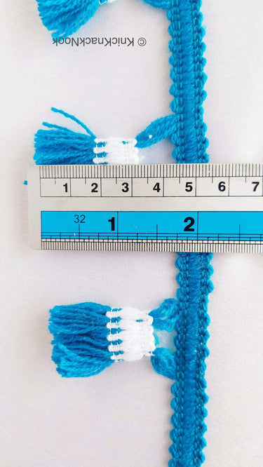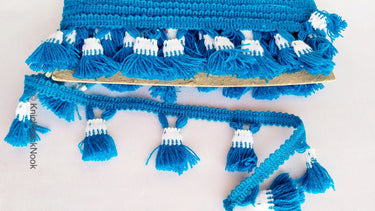 Blue and White Tassel With Blue Thread Lace Trim, Fringe Trim, Tassels, Bohemian Trimming.