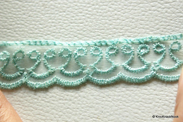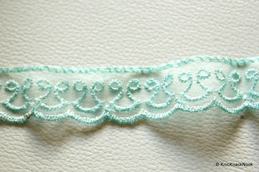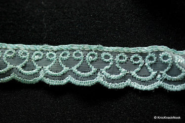 This listing is for a lovely Blue Organza Net Embroidery Lace Trim Ribbon.