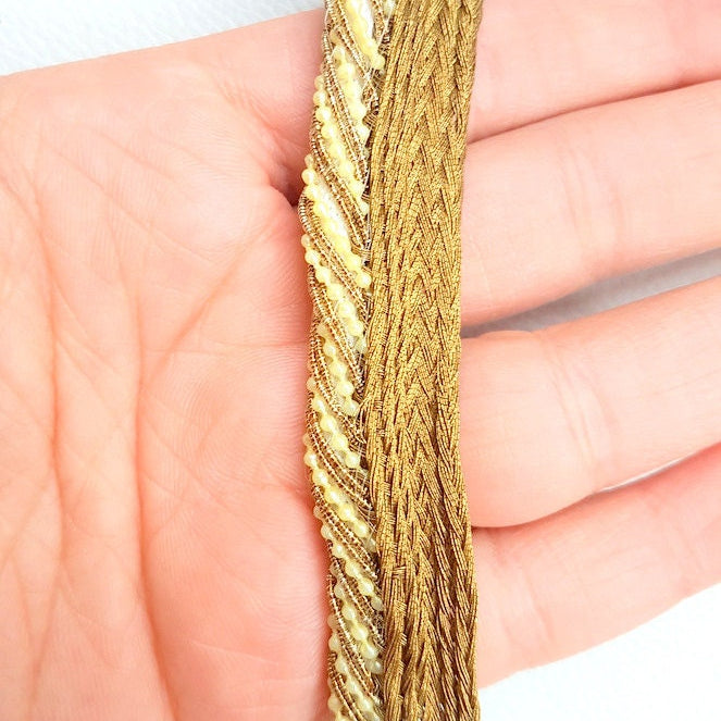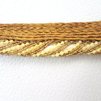 Antique Bronze Woven Trim With Gold Thread And Pearls, Approx. 20mm