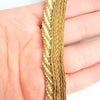 The embroidery on this trim is called Zardozi, an exclusive type of embroidery that is done by hand. Zardozi comes from two Persian words: zar or zarin meaning 'gold', and dozi meaning 'sewing'. Zardozi is a type of heavy and elaborate metal embroidery on a silk, satin, or velvet fabric base.