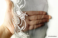 This listing is for a lovely White Pearl And Rhinestones Beads Net Lace Trim, Floral Trim, One Yard, Wedding Trim, Wedding Laces, Approx. 80mm Wide.