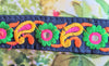 The embroidery on this trim is called Zardozi, an exclusive type of embroidery that is done by hand. Zardozi comes from two Persian words: zar or zarin meaning 'gold', and dozi meaning 'sewing'. Zardozi is a type of heavy and elaborate metal embroidery on a silk, satin, or velvet fabric base.