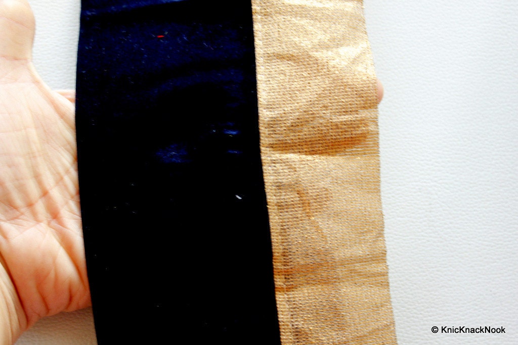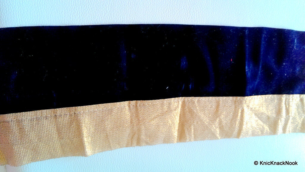 Blue Velvet Trim With Gold Shimmer Border Piping 1 Yard Approx 12 cm Wide