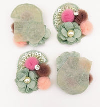 Hand Embroidered Teal Green And Pink Floral Applique, 2 Pcs.