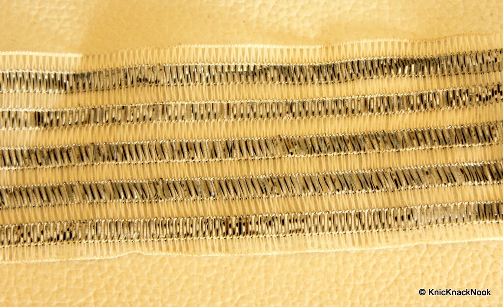 Silver And White Thread Sheer Stripes Trim Lace, Approx. 37mm wide