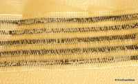 The embroidery on this trim is called Zardozi, an exclusive type of embroidery that is done by hand. Zardozi comes from two Persian words: zar or zarin meaning 'gold', and dozi meaning 'sewing'. Zardozi is a type of heavy and elaborate metal embroidery on a silk, satin, or velvet fabric base.
