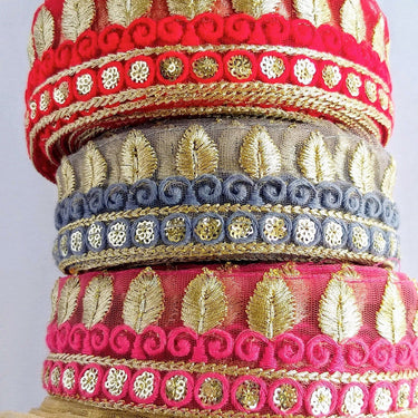 The embroidery work with mirrors on this trim is a speciality of Indian workmanship and is called as 'Abla Work' Or 'Shisha Work'. This is a very unique fabric trim and a special KnicKnackNook find which you will not find anywhere else.