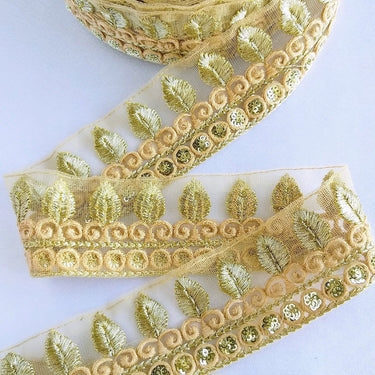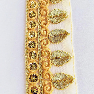 This listing is for a lovely Tan Brown Nude Net Lace Trim With Beautiful Brown And Gold Embroidery and Gold Sequins.