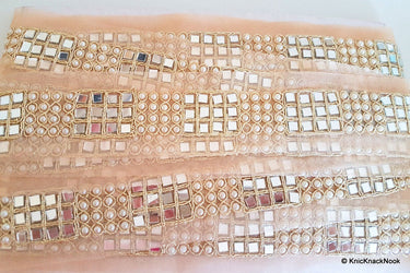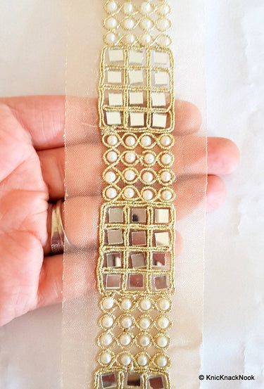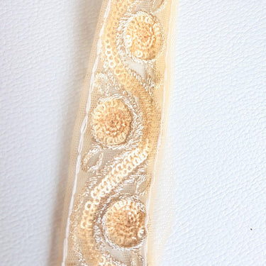 This listing is for a lovely Sheer Gold Fabric Lace Trim With Mirror And Pearl Embellishments. The embroidery work with mirrors on this trim is a speciality of Indian workmanship. This is a very unique fabric trim and a special KnicKnackNook find which you will not find anywhere else.