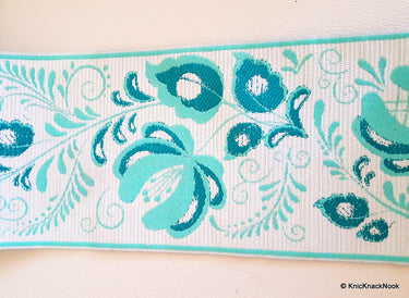 This listing is for a lovely Red, Beige And Gold Flower Embroidery Blue Fabric Lace Trim.