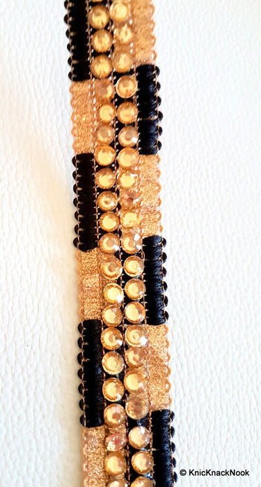 This listing is for a lovely Black And Gold Shimmer Lace Trim With Diamante Beads Embellishments. This is a very unique fabric trim and a special KnicKnackNook find which you will not find anywhere else.