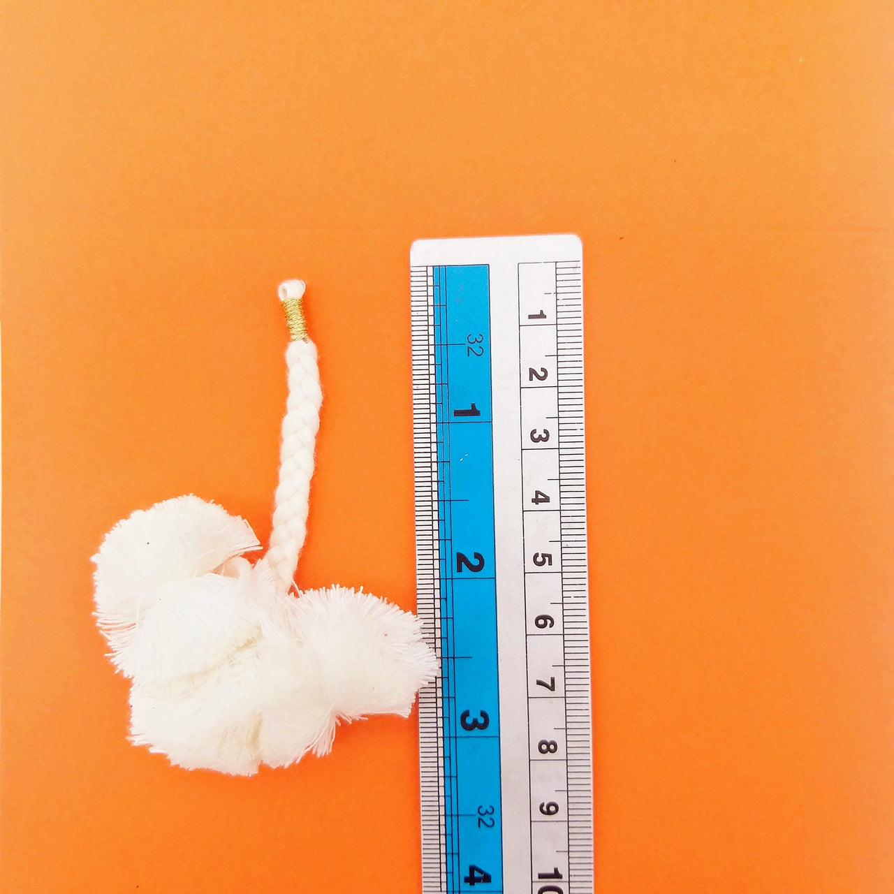 4 x Off White Pom-Pom Tassels Latkan, Pompom Decorations, Pom poms