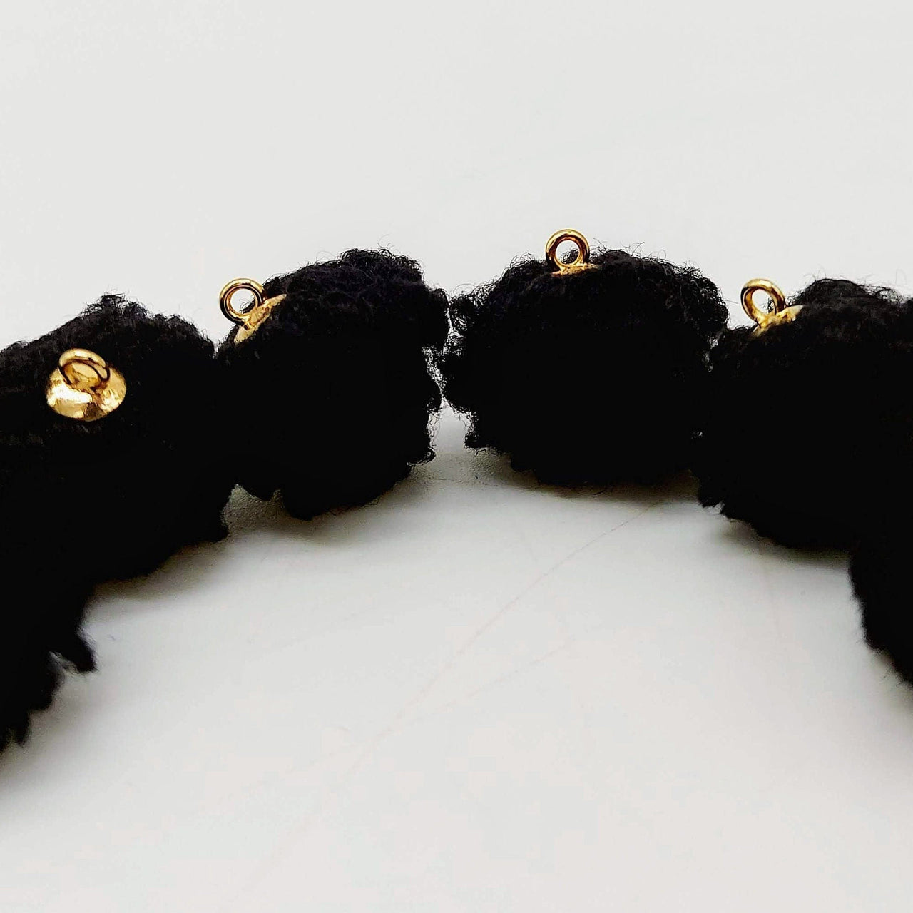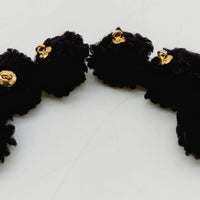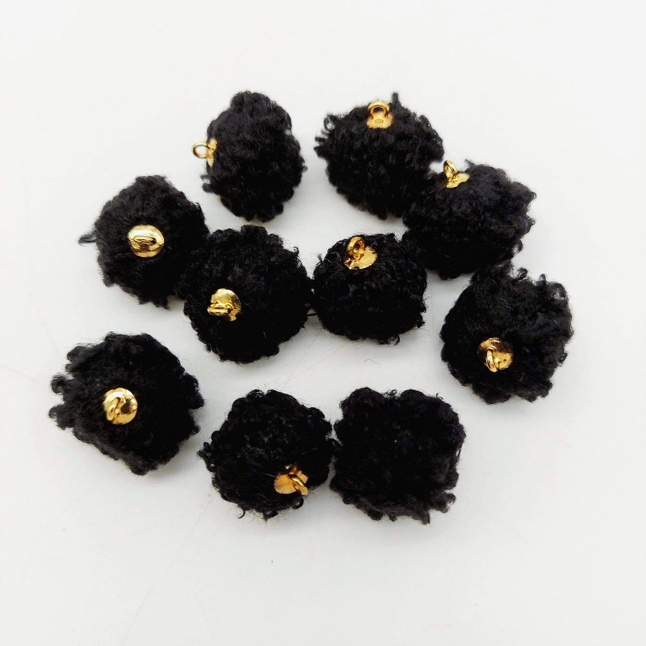 Black Fur Fabric Ball Tassel, Button with Ring Cap, Decorative Tassels