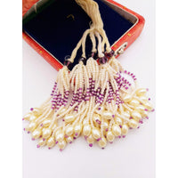 Ivory White and Purple Bead Tassels Latkan, Indian Latkans, Beaded Danglers