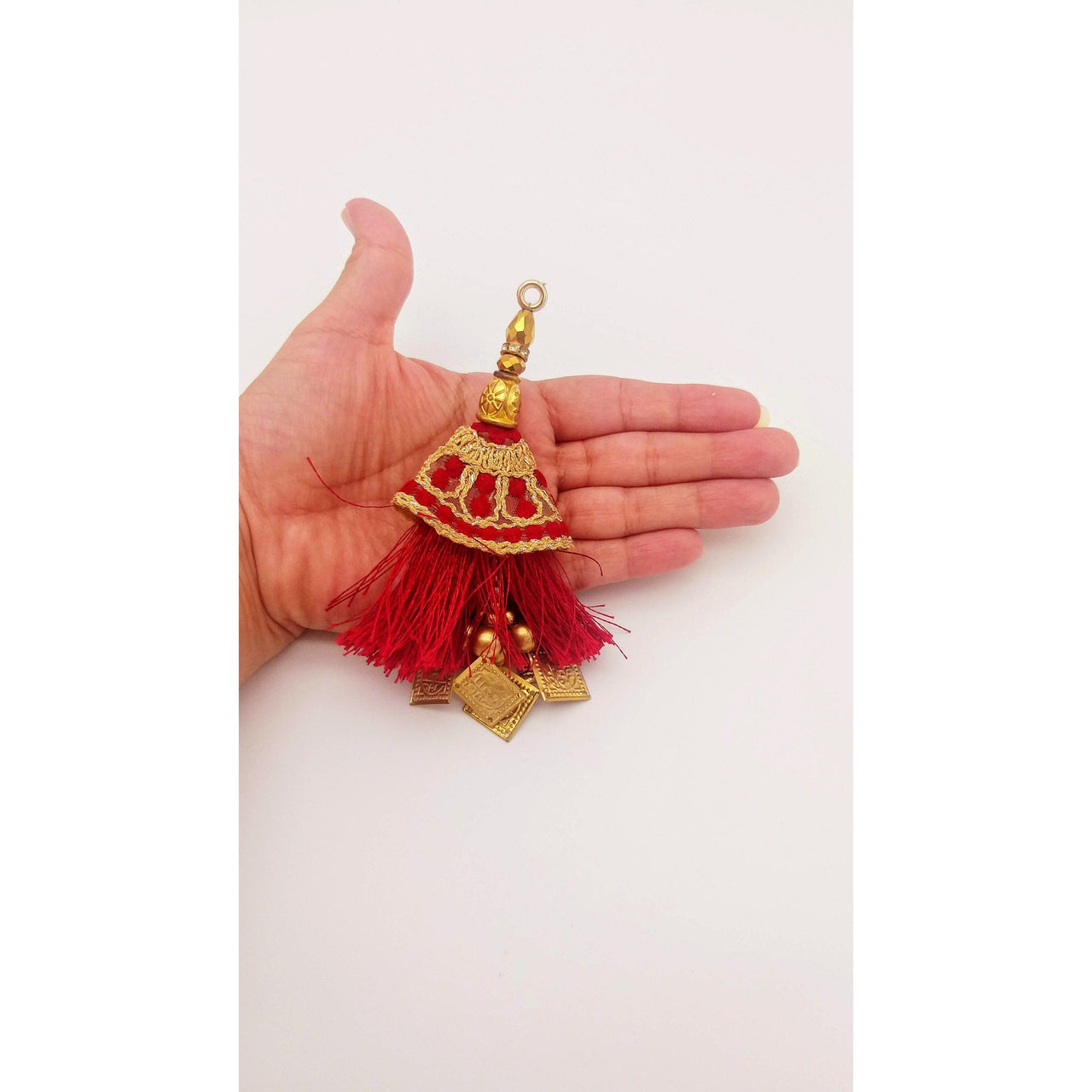 Maroon Tassels With Gold Beads, Beaded Tassels With Maroon and Gold Embroidery, Traditional Indian Latkan