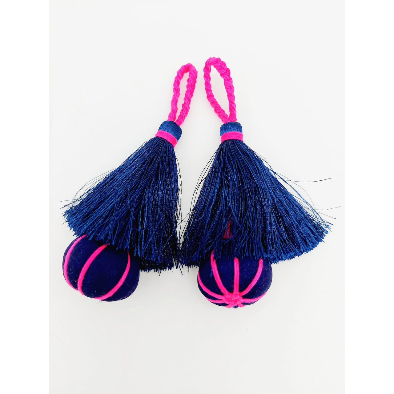 Navy Blue and Fuchsia Pink Pumpkin Tassels, Latkan, Indian Tassels