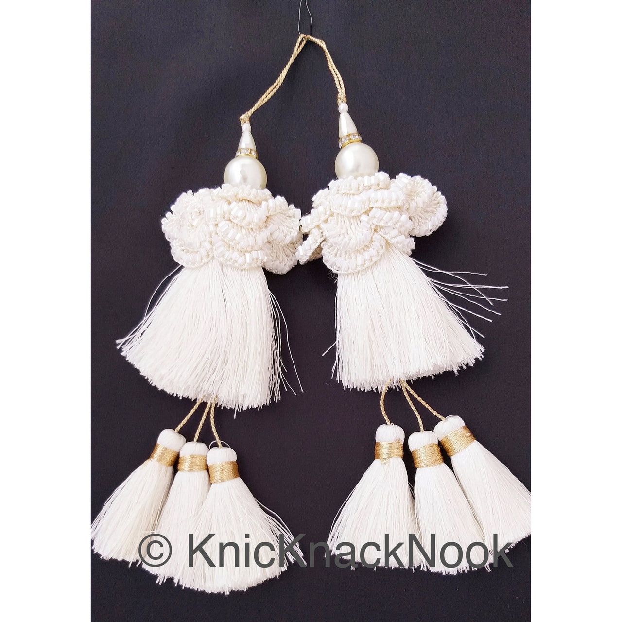 Off White Tassels With Pearl and Beads Embellishments Indian Tassels Wedding Bridal Latkan, Ethnic Tassels, Indian Latkan