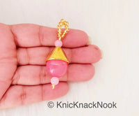 Pink Bead Tassels Latkan, Indian Antique Distressed Latkans, Gold Beaded Danglers