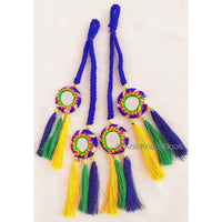 Pink / Blue Braid With Pink / Green, Yellow and Blue Tassels with Mirror Embellishments,Bohemian Tassels