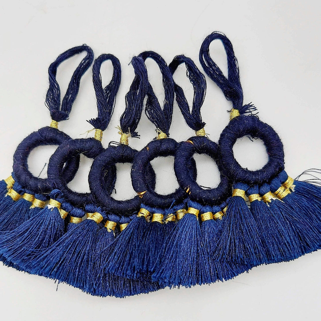 Set of 2 Navy Blue Hoop Tassels, Indian Tassels, Boho Chic Tassels