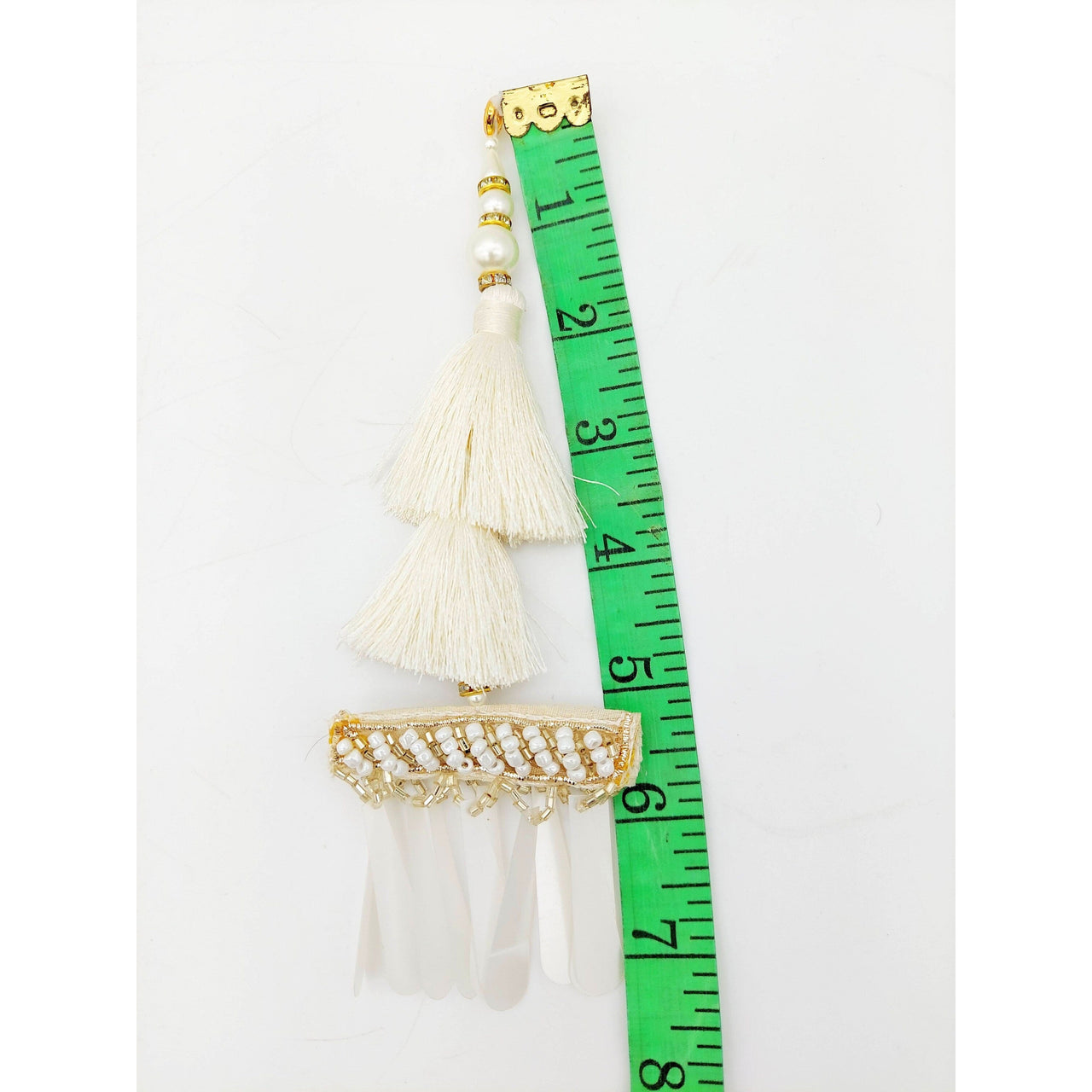This listing is for a lovely White Tassels With Long White Sequins And White and Gold Seed Pearl Beads, Beaded Thread Tassel Charms, 2 Pcs.