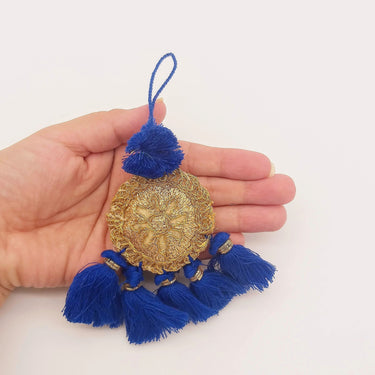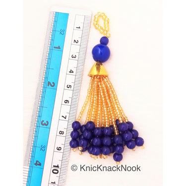 This listing is for Beautiful and one of a kind Blue and Gold Beads Tassels Latkan, Indian Latkans, Gold Beaded Danglers, Sewing Latkans, Beaded Tassels.