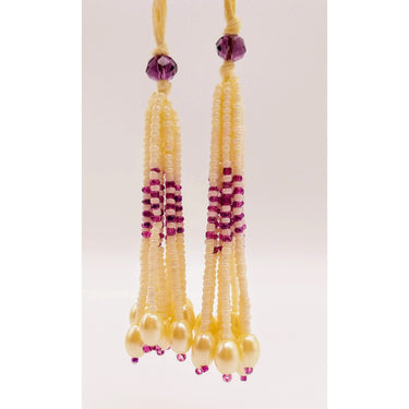 This listing is for Beautiful and one of a kind Ivory White and Purple Bead Tassels Latkan, Indian Latkans, Beaded Danglers, Sewing Latkans, Beaded Tassels, Bridal Tassels, Cocktail.