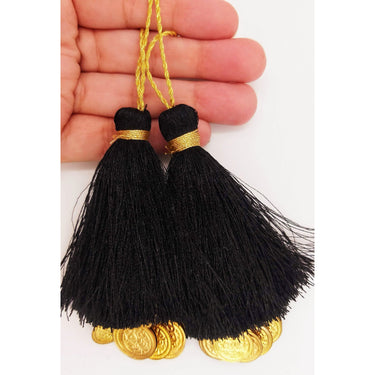 This listing is for a lovely Black Tassels Latkan With Metal Coins, Indian Latkans, Black Handmade Sewing Latkans, Sari Blouse Latkan, Bohemian Tassels. This is a very special KnicKnackNook find which you will not find anywhere else.