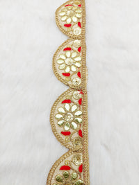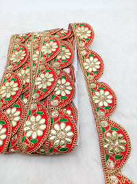 This listing is for a lovely 9 Yards Silk Fabric Scalloped Lace Trim, Indian Gold Foil Work Embroidery Gota Patti Sari Border Decorative Trim Craft Lace. The embroidery work on this trim is a speciality of Indian embroidery and the work is called Gota Patti.