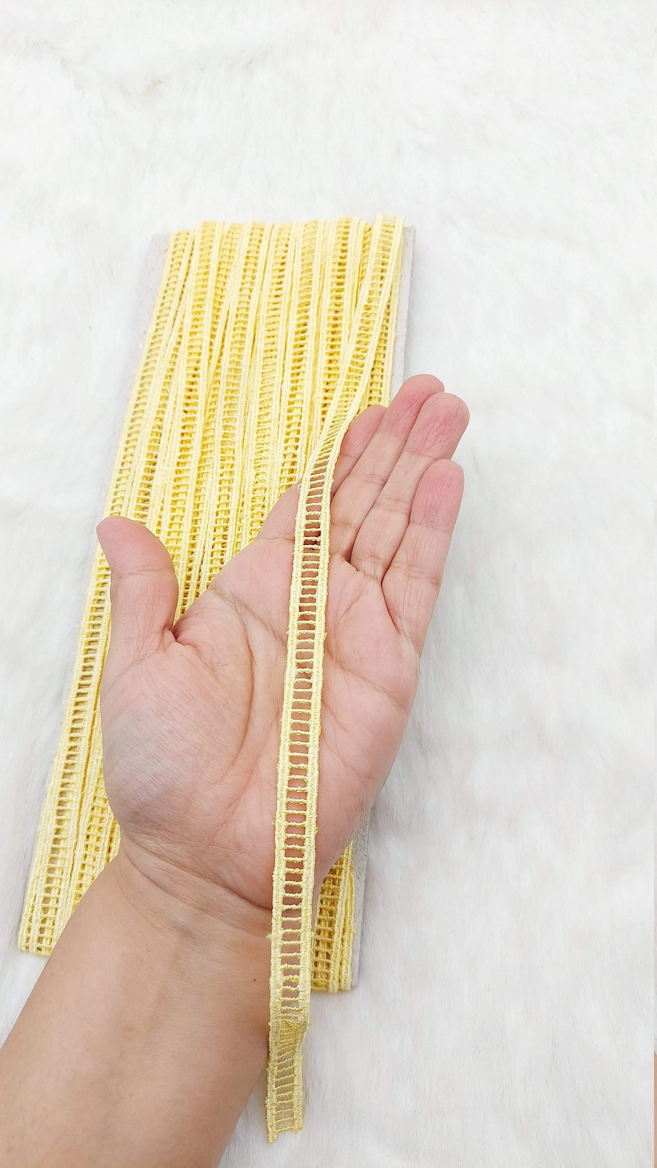 This listing is for a lovely Floral Embroidered Cutwork Trim, Yellow Embroidery, Beaded Floral Trim, Approx. 40mm Wide, Decorative Trim, Crafting Ribbon. This is a very unique fabric trim and a special KnicKnackNook find which you will not find anywhere else.