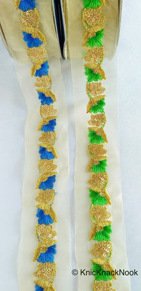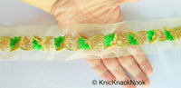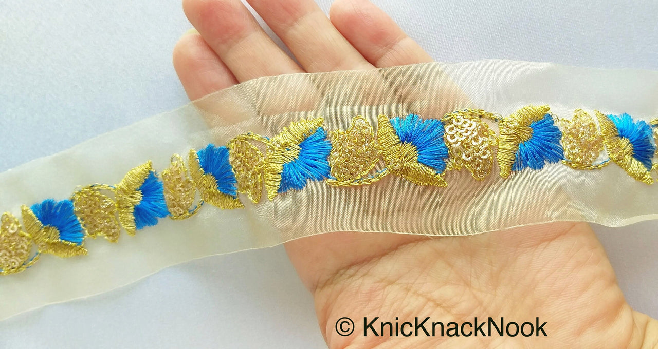 Wholesale Gold Sheer Trim In Gold Floral Embroidery With Sequins, Approx. 45mm Wide, Indian Sari Border