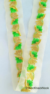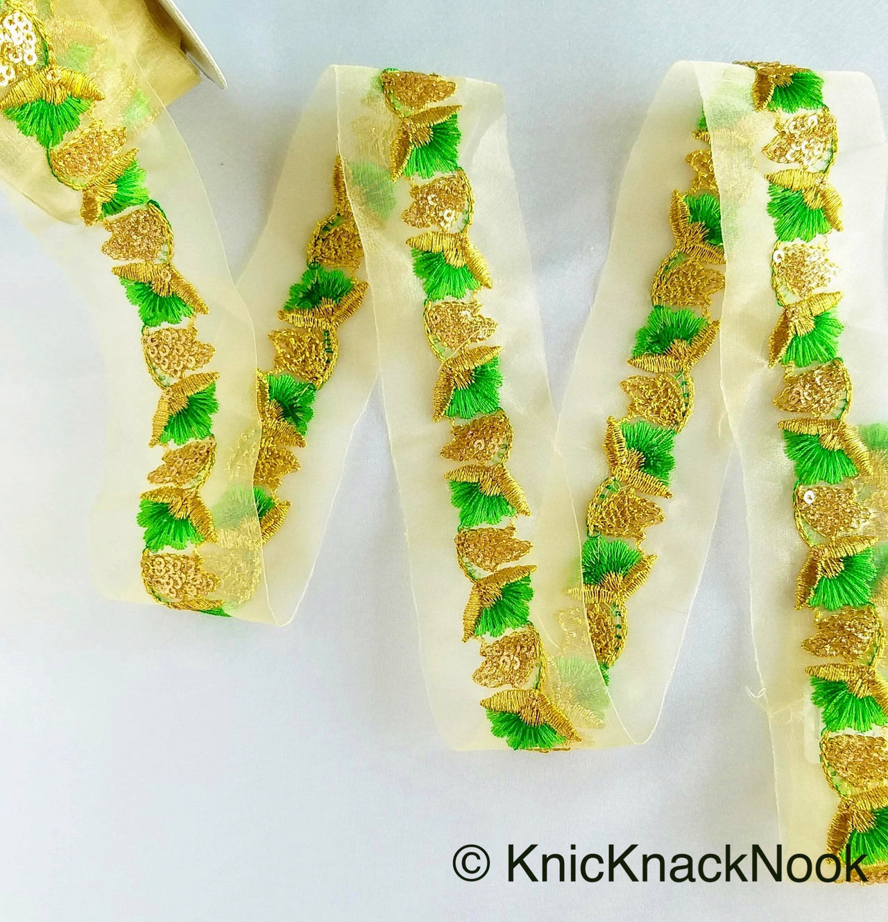 This listing is for a lovely Floral Embroidered Cutwork Trim, Yellow Embroidery, Beaded Floral Trim, Approx. 40mm Wide, Decorative Trim, Crafting Ribbon. This is a very unique fabric trim and a special KnicKnackNook find which you will not find anywhere else.