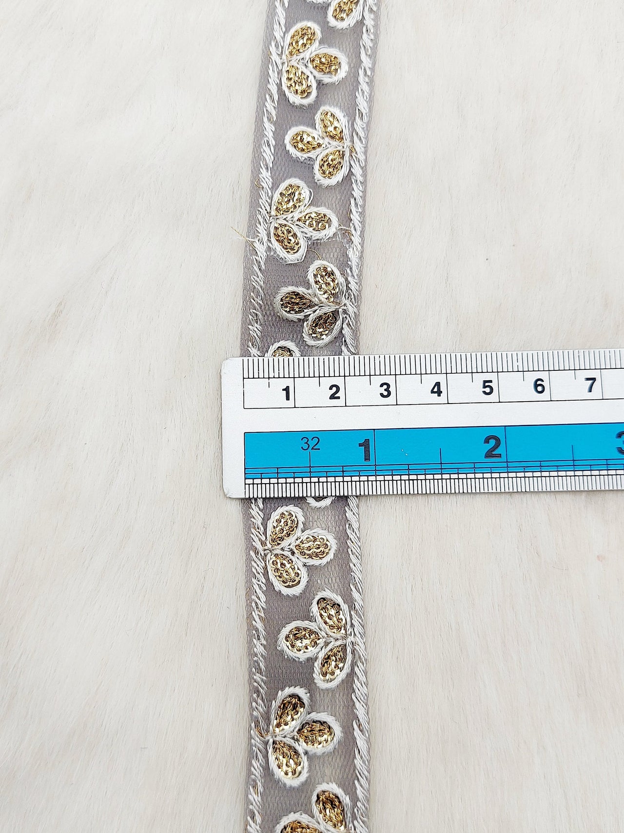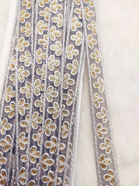 This listing is for a lovely Wholesale Grey Net Lace Trim Floral Embroidery & Glitter Gold Sequins, Indian Wedding Border, Gifting Ribbon Costume Trim Fashion Trimming