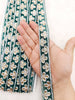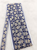 The embroidery on this trim is called Zardozi, an exclusive type of embroidery that is done by hand. Zardozi comes from two Persian words: zar or zarin meaning 'gold', and dozi meaning 'sewing'. Zardozi is a type of heavy and elaborate metal embroidery on a silk, satin, or velvet fabric base.