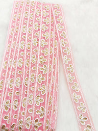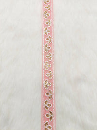 Wholesale Peach Net Lace Floral Embroidery & Glitter Gold Sequins, Indian Wedding Border, Gifting Ribbon Costume Trim Fashion Trimming