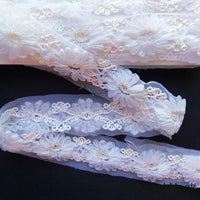Wholesale White Flower Tissue Net Fabric Lace Trim With Sequins, Floral Trim, Wedding Supplies Trim By 9 Yards