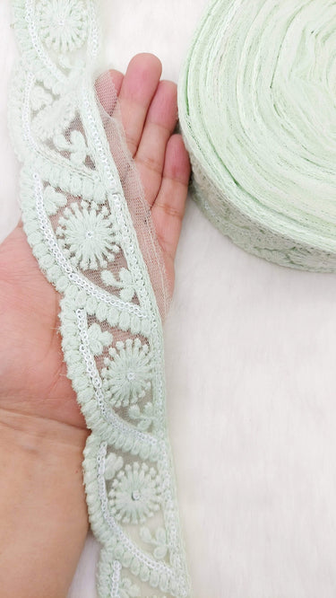 This listing is for Soft Net Lace Floral Embroidery and Sequins, Sari Border, Decorative Trim, Pastel Lace, Trim by 9 Yards.