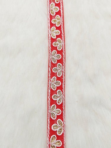 This listing is for a lovely Wholesale Red Net Lace Trim Floral Embroidery & Glitter Gold Sequins, Indian Wedding Border, Gifting Ribbon Costume Trim Fashion Trimming