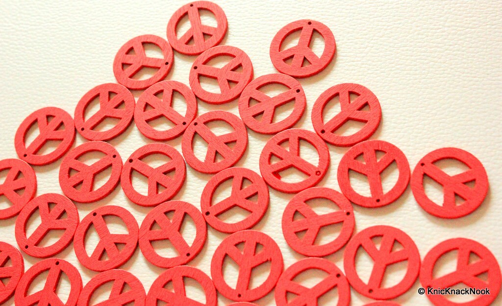 10 x Red Peace Wood Beads 24mm