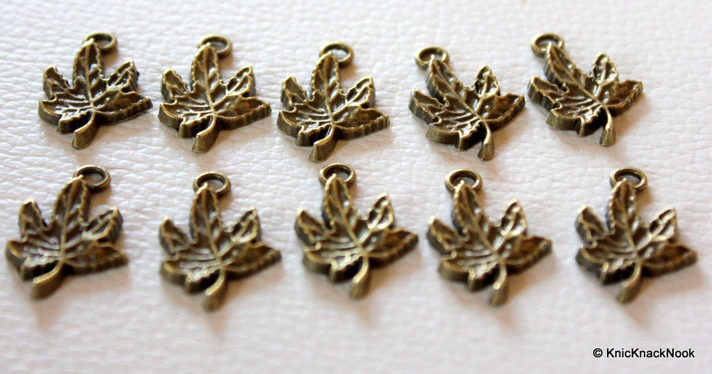 10 x Zinc Alloy Bronze Tone Maple Leaf Charm Pendants