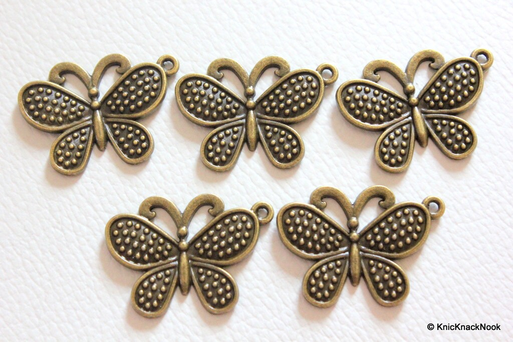 5 x Bronze Tone Butterfly Charm Spacer Pendants