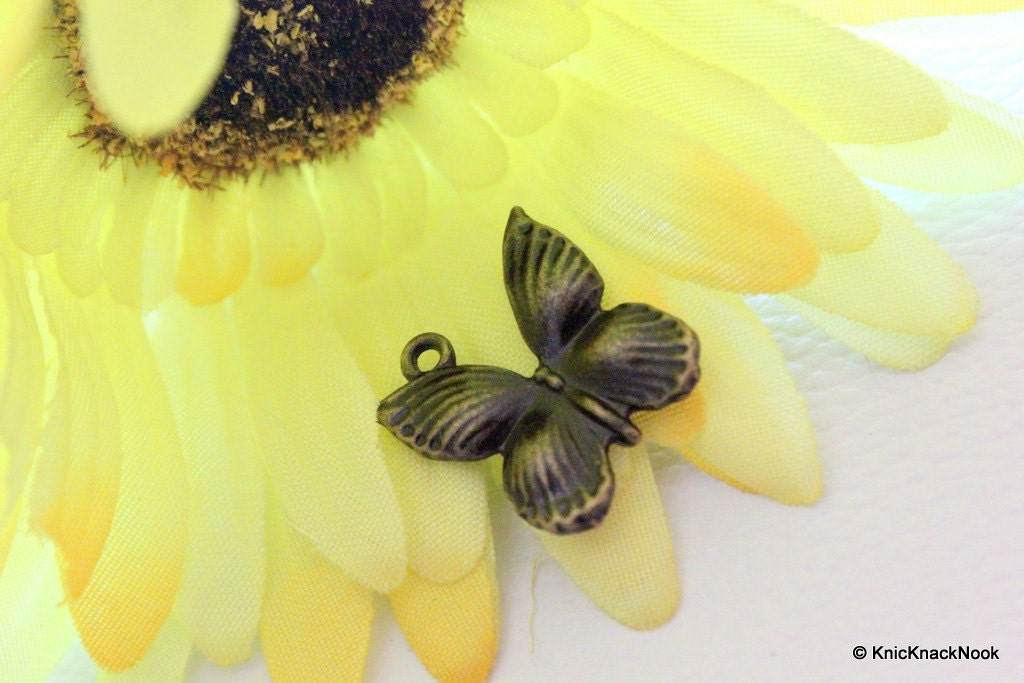 5 x Bronze Tone Butterfly Charm Spacer Pendants