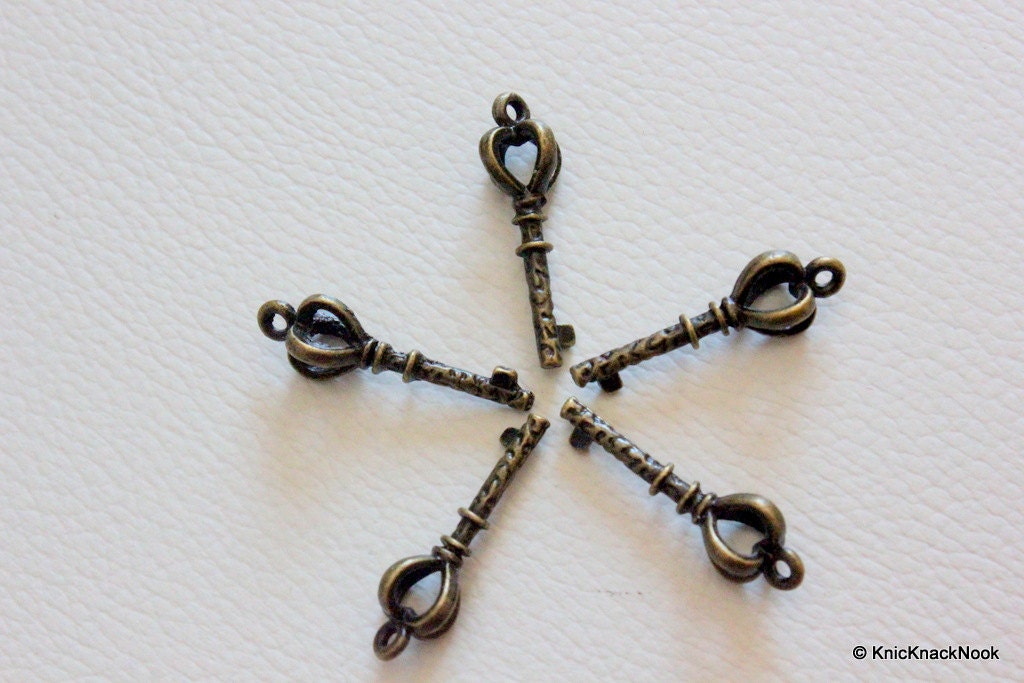 5 x Zinc Alloy Bronze Tone Key Charm Pendants 22mm x 8mm