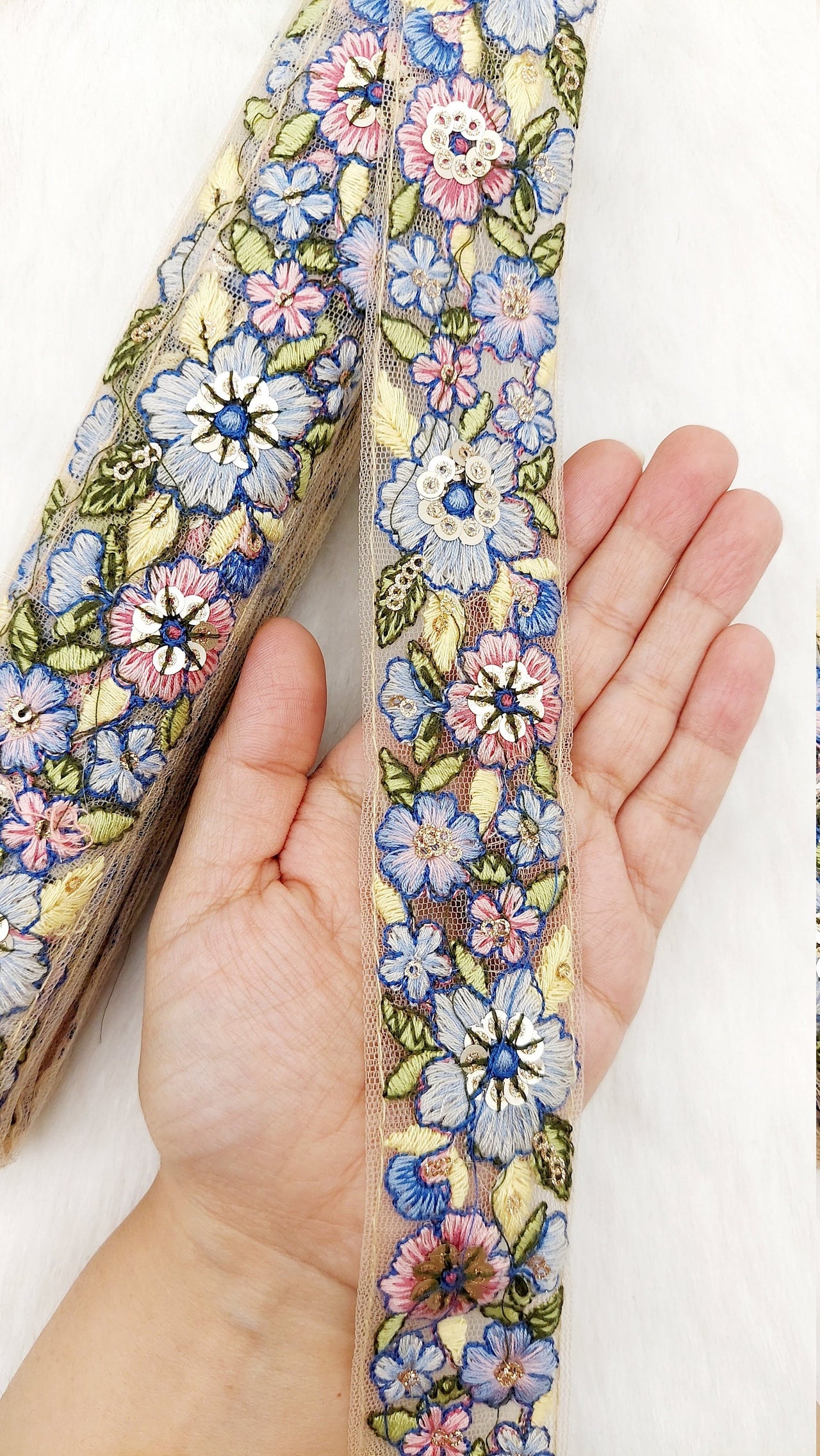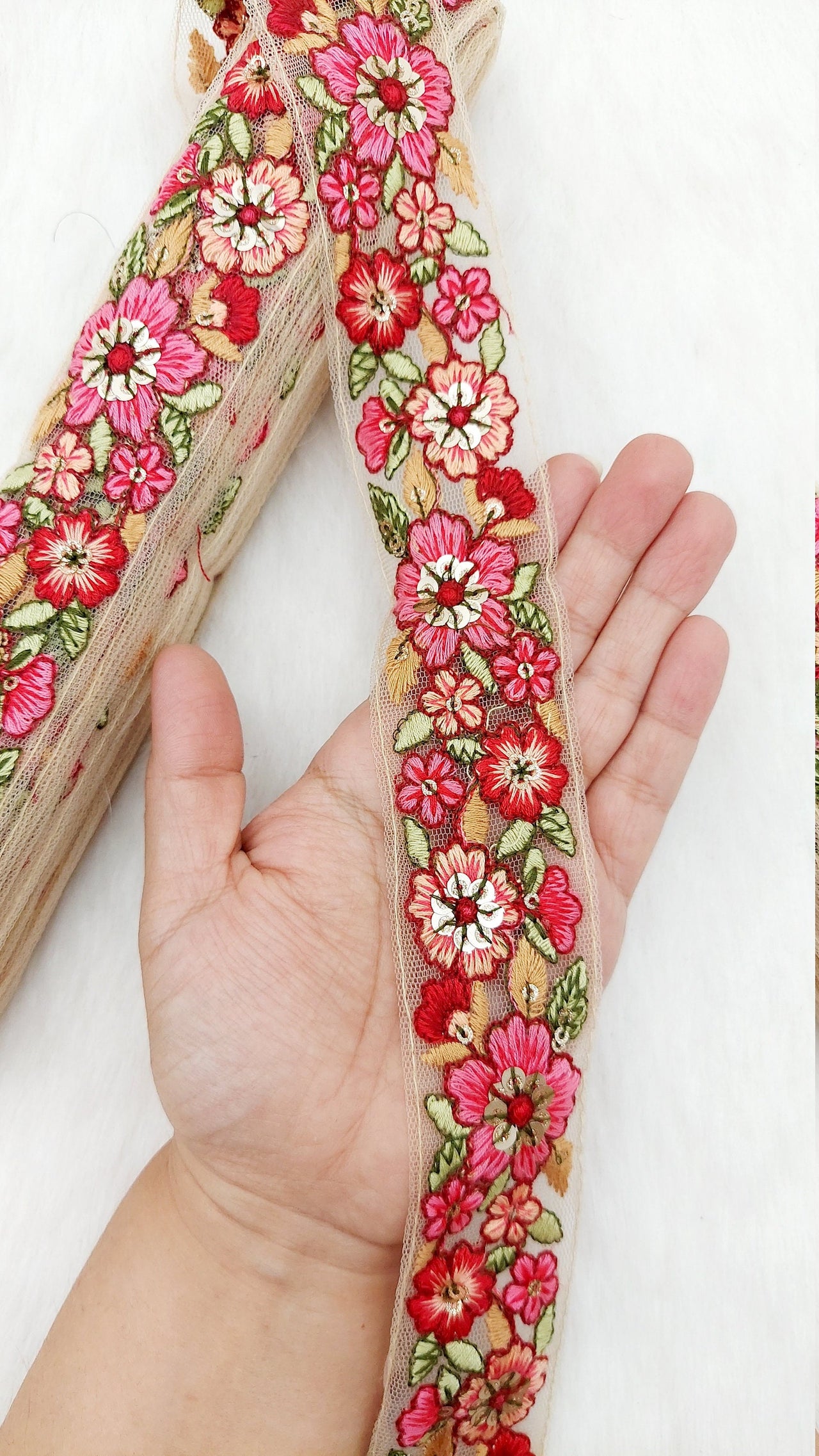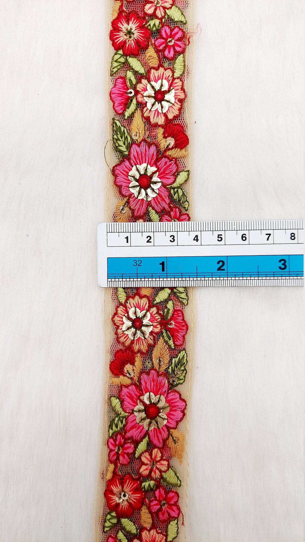 This listing is for a lovely Floral Embroidered Cutwork Trim, Yellow Embroidery, Beaded Floral Trim, Approx. 40mm Wide, Decorative Trim, Crafting Ribbon. This is a very unique fabric trim and a special KnicKnackNook find which you will not find anywhere else.