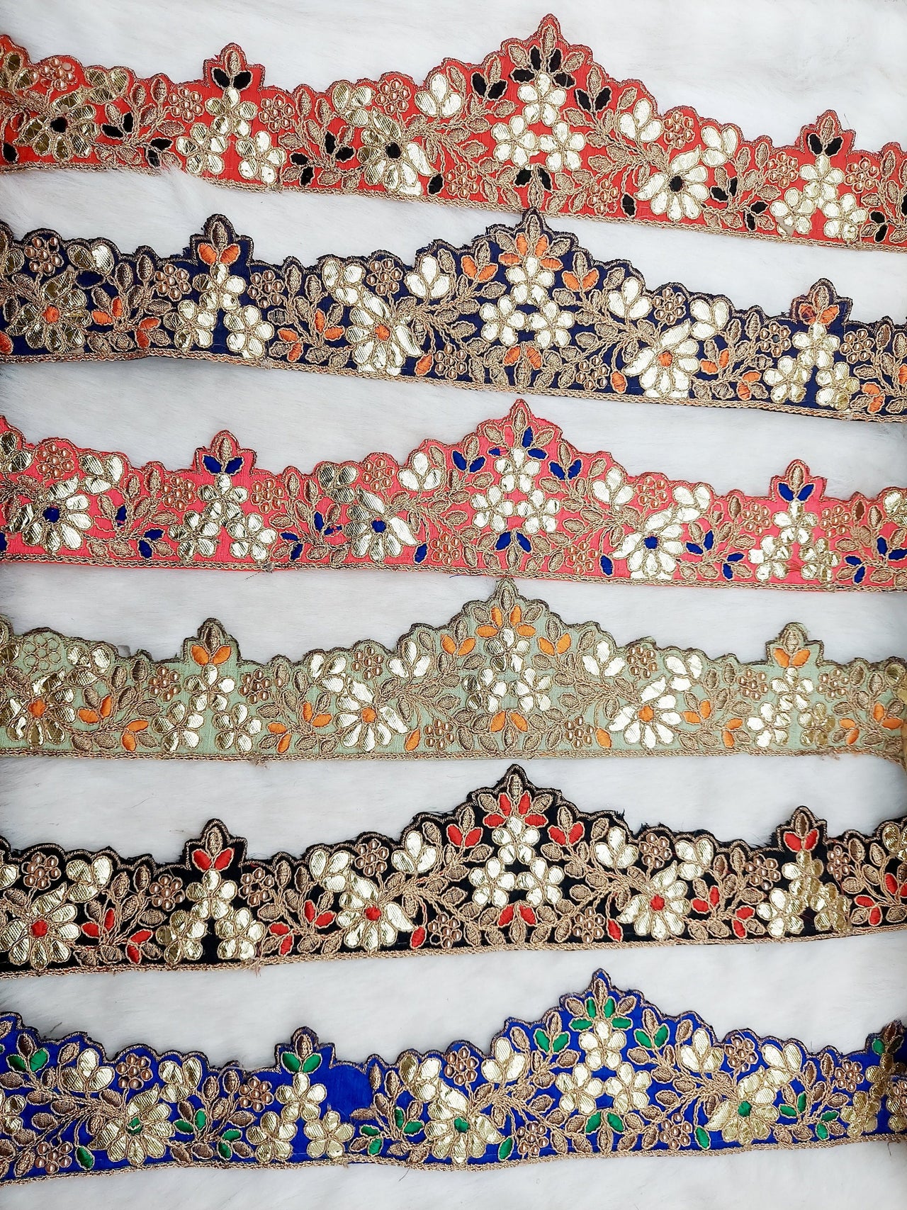 Art Silk Fabric Trim, Floral Embroidery Gold Gota Patti Indian Sari Border Trim By Yard Decorative Trim, Embroidered Indian Foil Work